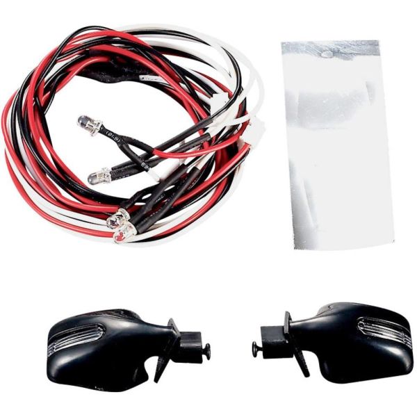 Achteruitkijkspiegels met LED voor 1/10 schaal SUV bodies. Kleur: zwart. Verpakt per 2 stuks.