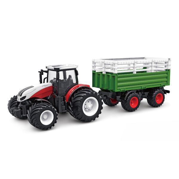 Het vervoeren van vee met een grote aanhanger kan nu zowel binnen als buiten vakkundig op afstand worden nagespeeld. Geschikt vanaf 6 jaar, de RC-tractor op schaal 1:24 met een koe als accessoire laat kinderogen sprankelen.