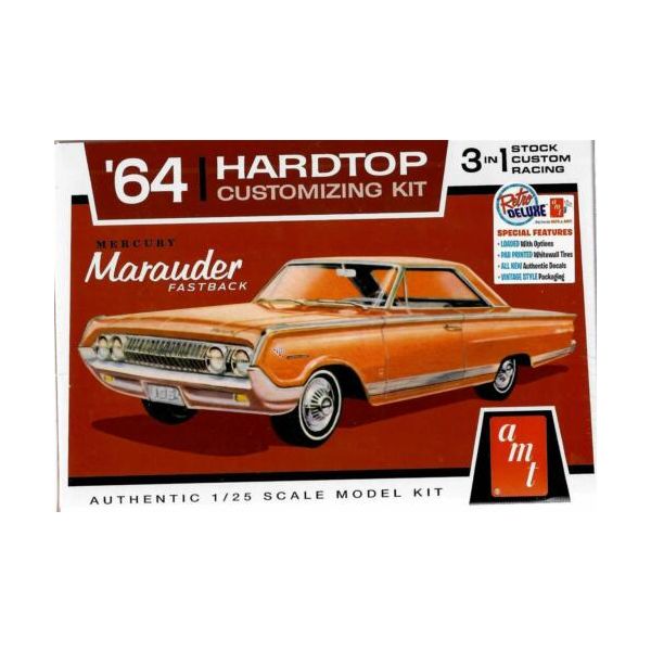 Met deze bouwdoos van het merk AMT kun je een 1964 Mercury Marauder Fastback in 1 op 25 schaal bouwen. Dit model moet nog volledig worden gebouwd waardoor er verf en lijm benodigd is. Deze worden standaard niet bij het bouwpakket geleverd.