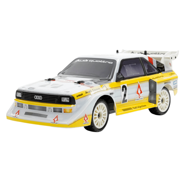 Dankzij een officiële samenwerking met Audi is de Sport Quattro nu ook beschikbaar in een schaalbare, betaalbare en ongelofelijk gedetailleerde uitvoering. Voorzien van 1/24e schaal, Brushless 8000kv motor, permanente 4WD en 2S LiPo-compatibiliteit, is dit model niet alleen een pronkstuk voor rallyliefhebbers, maar ook een krachtige RC-auto die echt prestaties levert. Het perfecte cadeau voor petrolheads en een must-have voor fans van historische rallywagens.