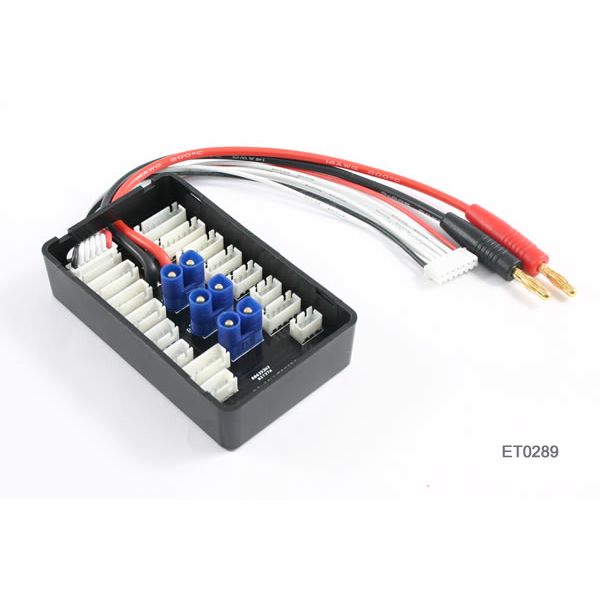Met de ParaBoard van Etronix is het mogelijk maximaal 3 lipo accu's (2 tot 6 cellen) tegelijk te laden (parallel) met slechts één lipo lader. Het enige wat je hoeft te doen is de accu's aan te sluiten en de stekkers in de lader te steken. De ParaBoard is voorzien van EC3 aansluitingen voor het laden van de lipo accu's, en XH aansluitingen voor het balanceren van de lipo accu's.