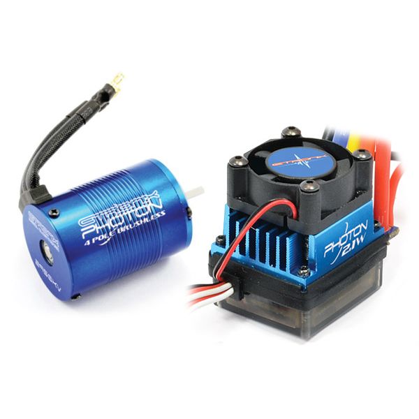 Etronix Photon 2.1W brushless combo voor 1:10 schaal auto's. Deze set bevat een 45A regelaar en een 4350kv 4-pole motor. De Etronix Photon 2.1W combo is waterproof en geschikt voor het gebruik van 2S en 3S Lipo accu's. Ook kan deze set gebruikt worden met NiMH accu's (5-10 cellen).