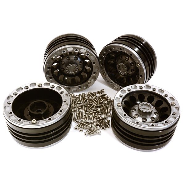 Set Billet Machined Aluminium 1.9 velgen. Kleur: zilver/zwart. Geschikt voor de Traxxas TRX-4.