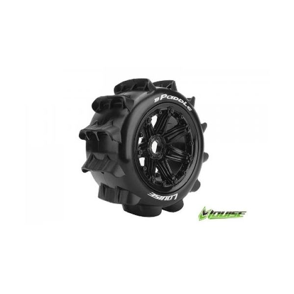 Set Louise B-Viper achterbanden voorgemonteerd op velgen. Deze wielen zijn geschikt voor 1 op 5 schaal buggy's met 24mm wielmeenemers. Verpakt per 2 stuks. Diameter: 188mm. Breedte: 81.4mm. Kleur: Zwart.