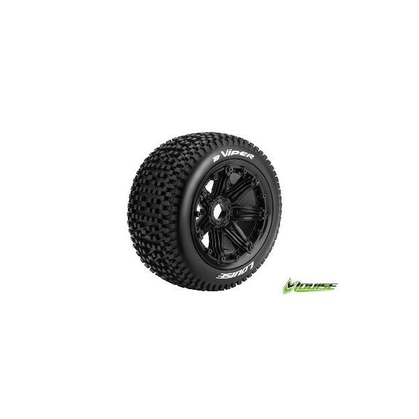 Set Louise B-Viper achterbanden voorgemonteerd op velgen. Deze wielen zijn geschikt voor 1 op 5 schaal buggy's met 24mm wielmeenemers. Verpakt per 2 stuks. Diameter: 171.2mm. Breedte: 81.4mm. Kleur: Zwart.