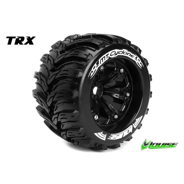 Volledig voorgemonteerde MT-CYCLONE Medium banden op velg geschikt voor 1 op 8 monster truck (oa. EP E-REVO Voor/Achter - EP SUMMIT Voor/Achter - GP T-MAXX 3.3 Voor/Achter). De Louise MT-CYCLONE wielen zijn verpakt per 2 stuks. Hex: 17mm, Offset: 1/2''.