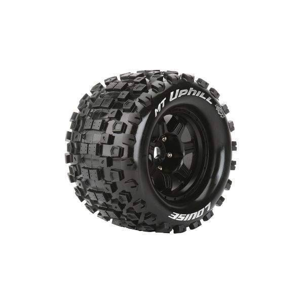 Volledig voorgemonteerde MT-UPHILL MFT banden op velg geschikt voor 1 op 8 monster truck (oa. EP E-MAXX Voor/Achter - GP REVO 3.3 Voor/Achter - GP HPI SAVAGE XL Voor/Achter - GP HPI SAVAGE X 4.6 Voor/Achter - EP HPI SAVAGE FLUX HP Voor/Achter). De Louise MT-UPHILL wielen zijn verpakt per 2 stuks. Hex: 17mm, Offset: 0''. Kleur velg: zwart.