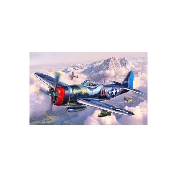 Revell 1/72 P-47m Thunderbolt. 1 op 72 schaal. Dit model moet nog volledig worden gebouwd waardoor er verf en lijm benodigd is. Deze worden standaard niet bij het bouwpakket geleverd.
