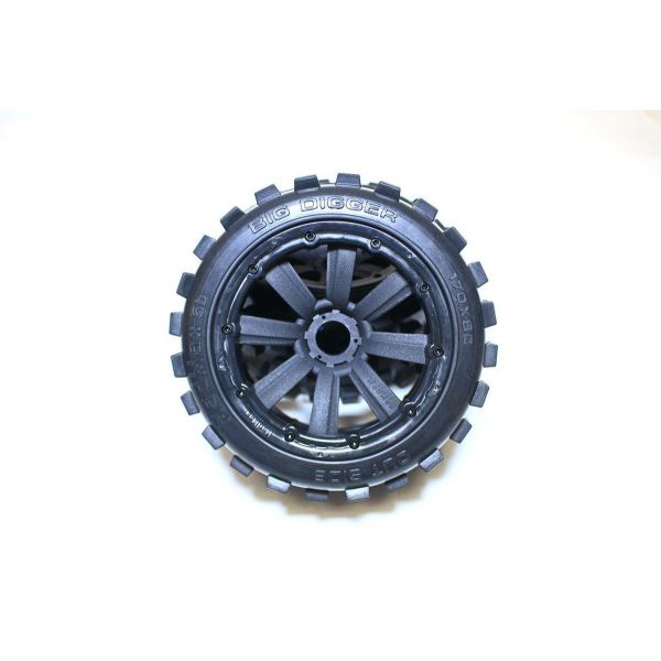 Set achterwielen "Big Digger" compleet met 8-Spaaks velgen zwart . Geschikt voor 1 op 5 modellen zoals de HPI Baja. Per 2 stuks verpakt.
