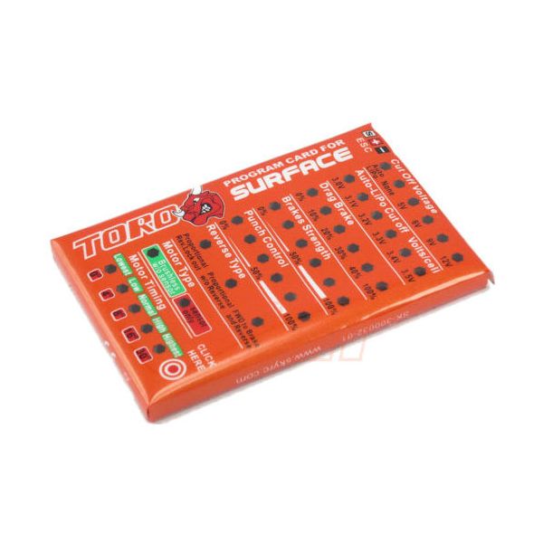 Programmeer uw Sky RC Toro regelaar met deze programmeerkaart. Met deze programmeerkaart kunt u vrijwel iedere parameter instellen.
