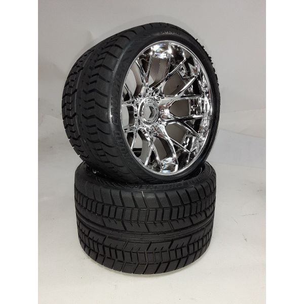 Als je opzoek bent naar wielen die de hoge snelheden van jouw RC auto aan kunnen dan zijn deze banden van Sweep Racing iets voor jou! De Sweep Racing on-road Crusher banden zijn volledig van rubber gemaakt en bevatten geen inlays. Hierdoor kan de band niet "balloonen" (opblazen). De Road Crusher wielen zijn geschikt voor RC auto's met 17mm wieladapters. Deze wielen hebben 1/2 inch offset en komen daardoor iets verder naar buiten dan wielen zonder offset. Kleur: zilver-chrome. Verpakt per 2 stuks.