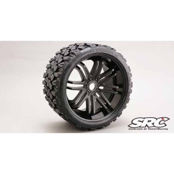 Sweep Racing Terrain Crusher Belted wielen - 1/4 Offset - 17mm - Zwart