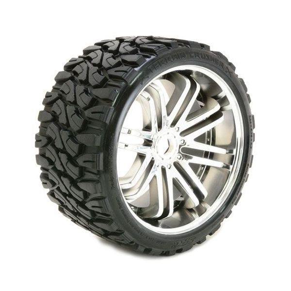 Als je opzoek bent naar wielen die de hoge snelheden van jouw RC auto aan kunnen dan zijn deze banden van Sweep Racing iets voor jou! De Sweep Racing Terrain Crusher banden zijn volledig van rubber gemaakt en bevatten geen inlays. Hierdoor kan de band niet "balloonen" (opblazen). De Terrain Crusher wielen zijn geschikt voor RC auto's met 17mm wieladapters. Deze wielen hebben 1/4 inch offset en komen daardoor iets verder naar buiten dan wielen zonder offset. Kleur: zilver. Verpakt per 2 stuks.