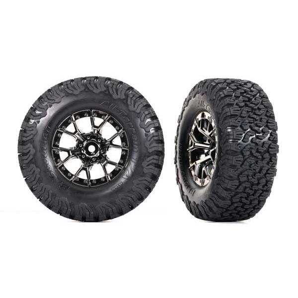 Traxxas - Tires & wheels, assembled, glued (Ford Raptor R black chrome wheels, BFGoodrich All-Terrain T/A KO2 tires, foam inserts) (2) (4WD front/rear, 2WD rear) (TRX-10187-BLKCR)