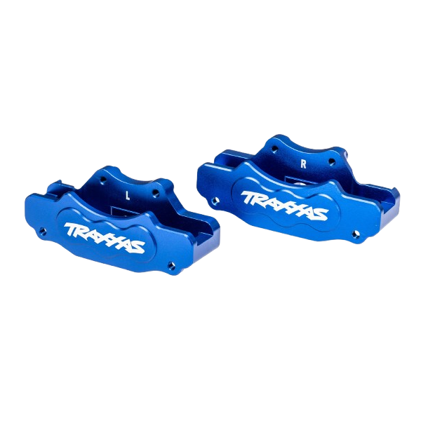 Traxxas - Brake calipers, front (left & right) (blue-anodized 6061-T6 aluminum)/ 3x10mm CS (with threadlock) (4)/ 2.5x8mm BCS (with threadlock) (4) (TRX-10951-BLUE)