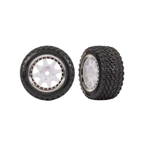 Traxxas - White Chrome Rear Mini Rally wheels with Rally Tires (2) (TRX-10873-WHTC)