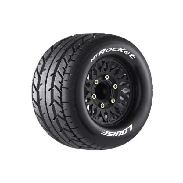 Tweedehands Louise 1/8 MT Rocket banden 17mm Hex 0'' en 1/2'' offset. 4 stuks ( 5 minuten oud).